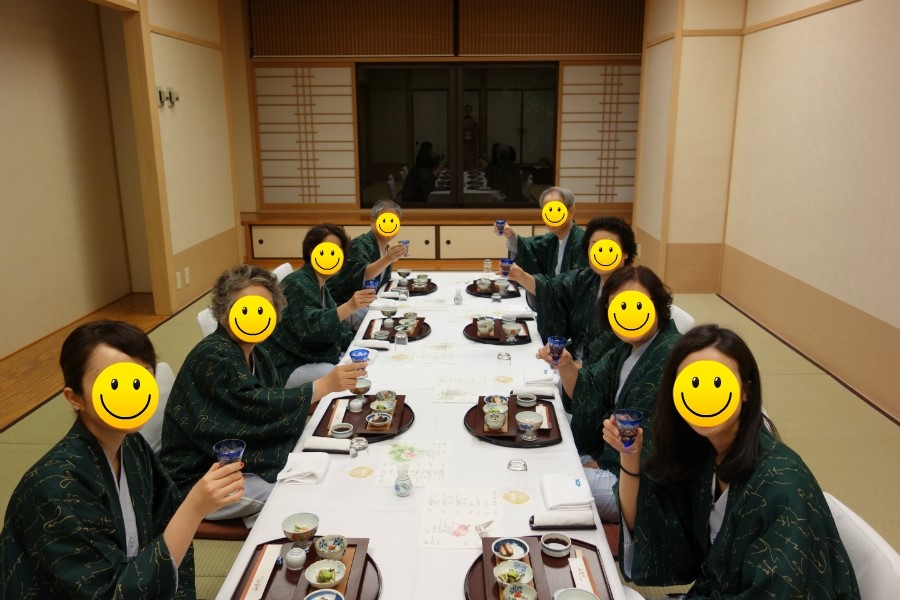 첫날은 요래요래 곱게 유카타까지 다 차려입고 먹었는데요~