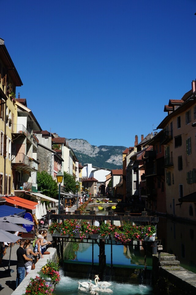 안시는 프랑스 동쪽에 있는 작은 소도시 입니다. 파리에서 TGV를 타고 이동했고 덕분에 먼거리이지만 빨리 갈 수 있었습니다. 스위스를 가고 싶었는데 스위스를 가기엔 돈이 없어서 스위스의 느낌을 가지고 있다는 안시로 ㅎㅎㅎ 프랑스 사람들이 살고 싶은 도시로 꼽히는 동네라고 하는데 필터링 안끼고 그냥 쌩 렌즈로 찍어도 이럴 정도로 여기 너무 예쁘더라고요. 바다 같은 호수가 있어서 여기서 태닝도 하고 물놀이도 하고 너무 좋았습니다.