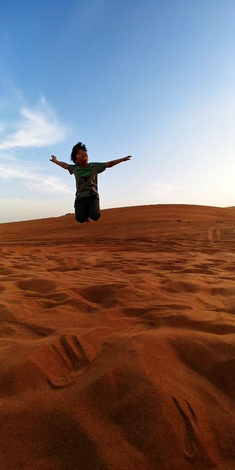 마치 놀이기구 타는듯 정말 재미 있었어요. 저희는 샌드 보드도 신청해서 타봤는데 색다르고 재미 있었어요.. 사막 투어 나가서 인생샷 여러장 건졌구요^^ 저희 둘째 아이 인생샷 입니다^^ ㅎㅎㅎㅎ