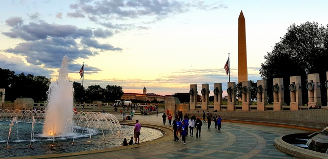 Lincoln Memorial 앞에 큰 연못이 있는데요, 비온뒤에 노을이 진 모습이 정말 아름다웠습니다.