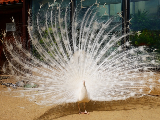 지나다 들른 승마학교 내에서 운좋게 날개를 핀 흰공작을 만나다.