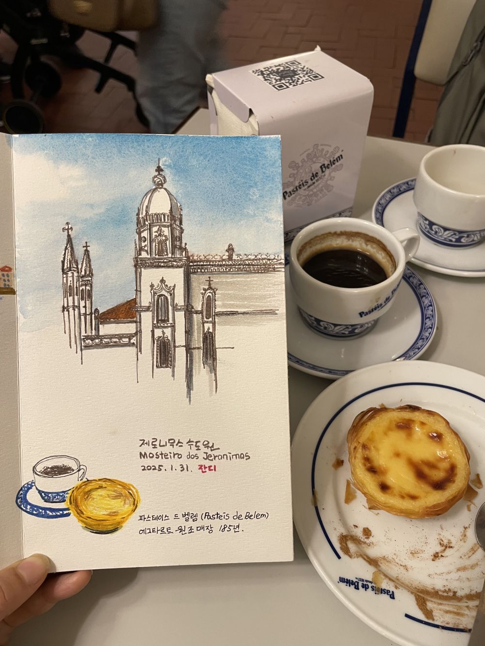 여행 중에는 얘기치 않은 에피소드가 생기게 되지요. 이번 여행에서도 몇가지 재미있는 일을 겪었습니다. 저와 남편은 여행지에 가면 어반 스케치로 여행지의 기록을 남기곤 하는데 제로니무스 수도원 앞에서 스케치를 하던 중 포르투갈 국영방송국 RTP 기자분의 눈에 띄어 생각지도 못했던 외국 방송국과 인터뷰를 하는 일이 생겨버렸네요. 언제 방송되는지도 모르는 인터뷰 ㅎㅎ