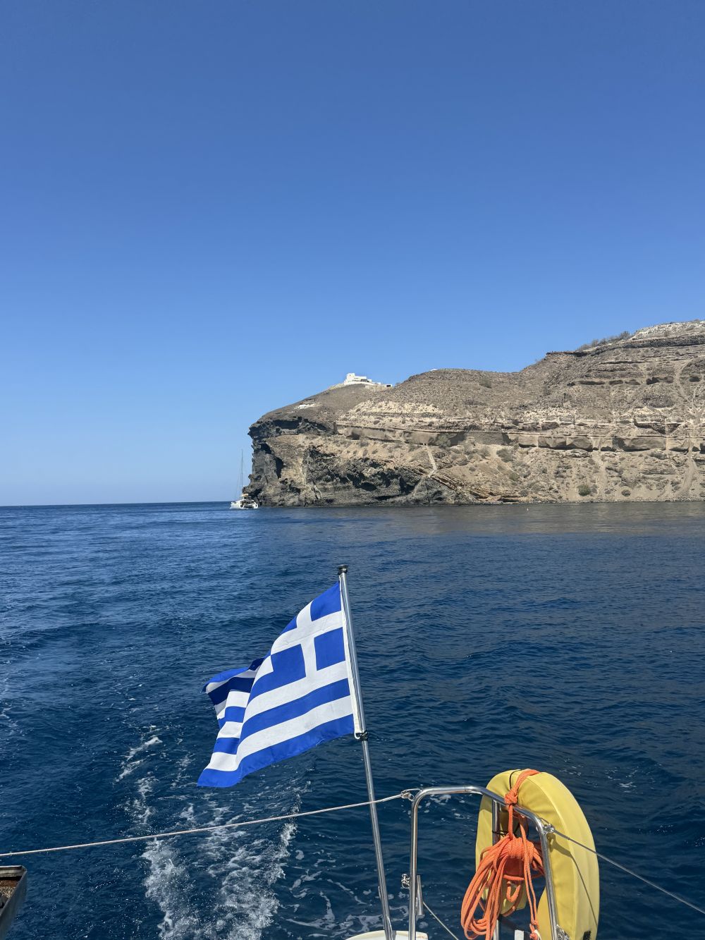 바다에서 보는 산토리는 또다른 매력이 있었습니다. 레드비치, 화이트비치를 들리며 그 곳에서 수영도 할 수 있게 스노쿨링 장비도 다 빌려주며 바다수영을 자유롭게 했구요. 수영한 후엔 낮잠시간도 있고, 바베큐파티 & 그릭샐러드 & 그리스 요리들을 제공하며 와인과 맥주 무제한 제공으로 배부른 점심을 먹을 수 있었어요. 멀미가 날 줄 알고 걱정했는데 배가 그렇게 많이 흔들리진 않았던 것 같습니다!