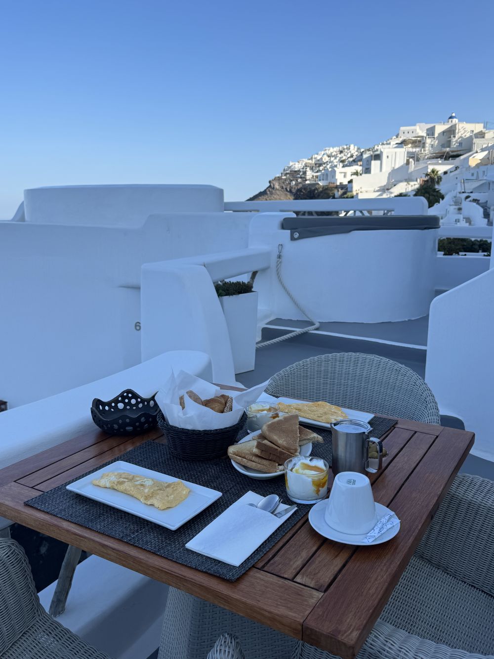 제가 묵었던 곳은 필로스테파니에 있는 Chic Hotel에서 3일을 머물렀는데, 산토리니에서 더 길게 묵고 싶어서 아테네의 일정을 줄이고 왔는데 후회하지 않을만큼 여유롭고 좋은 선택이었던 것 같습니다. 호텔 테라스 앞에서 먹은 조식과 따뜻한 그리스 커피는 평생 기억에 남을 것 같아요.